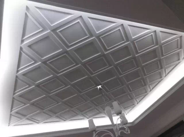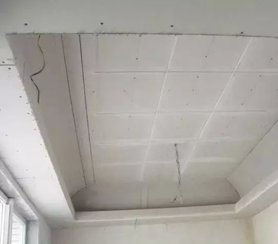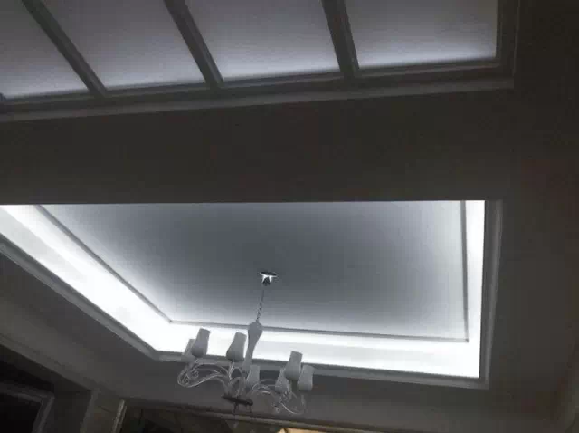 下面平板天花的吊筋还没完全做完,全部算上去不会比平面花的成本少,而成功之后,客户只看到一个白色的顶,与原墙没有任何区别。