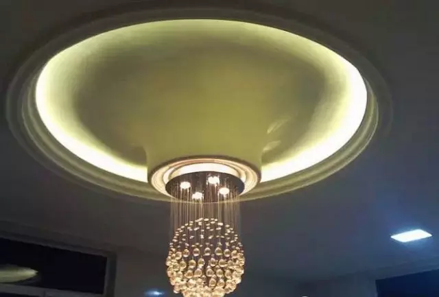 这个吊顶造型,看上去好象不要很多材料,但内行人就会发现,仅弧型部位就要几张大芯板来挖。再加上50厘米的深度。